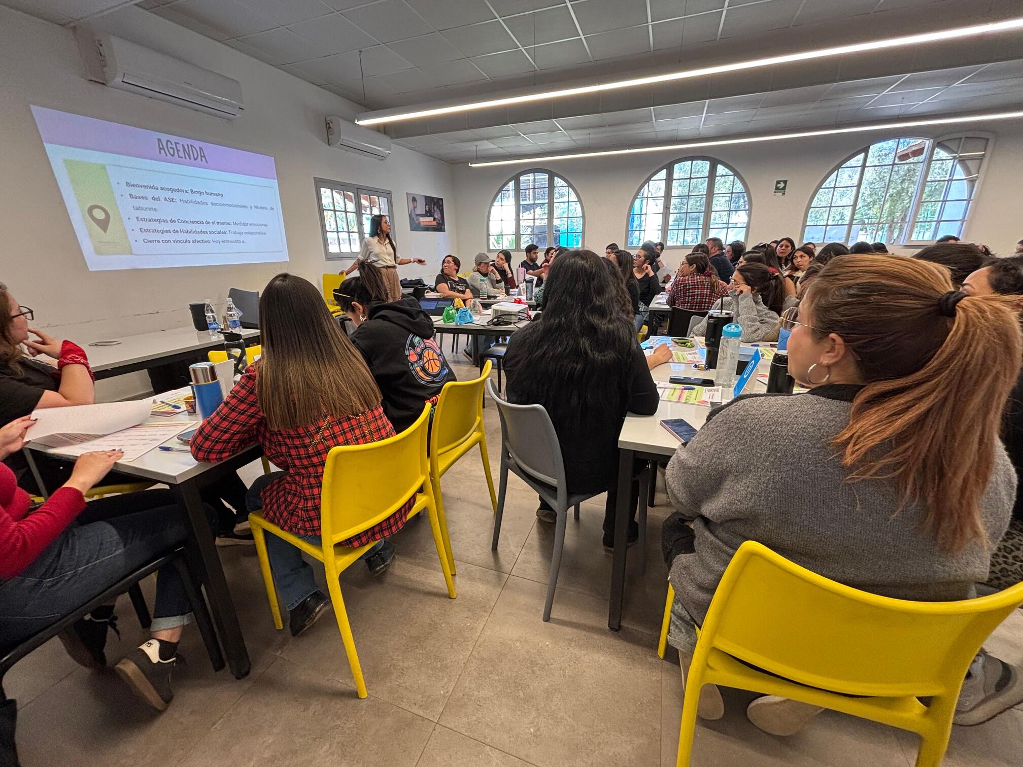 El objetivo de esta instancia fue que los asistentes conocieran y experimentaran diversas estrategias que favorecen el vínculo entre docentes y estudiantes en el aula, promoviendo el reconocimiento y regulación de emociones, la ampliación del vocabulario emocional y el desarrollo de habilidades sociales a través del juego.